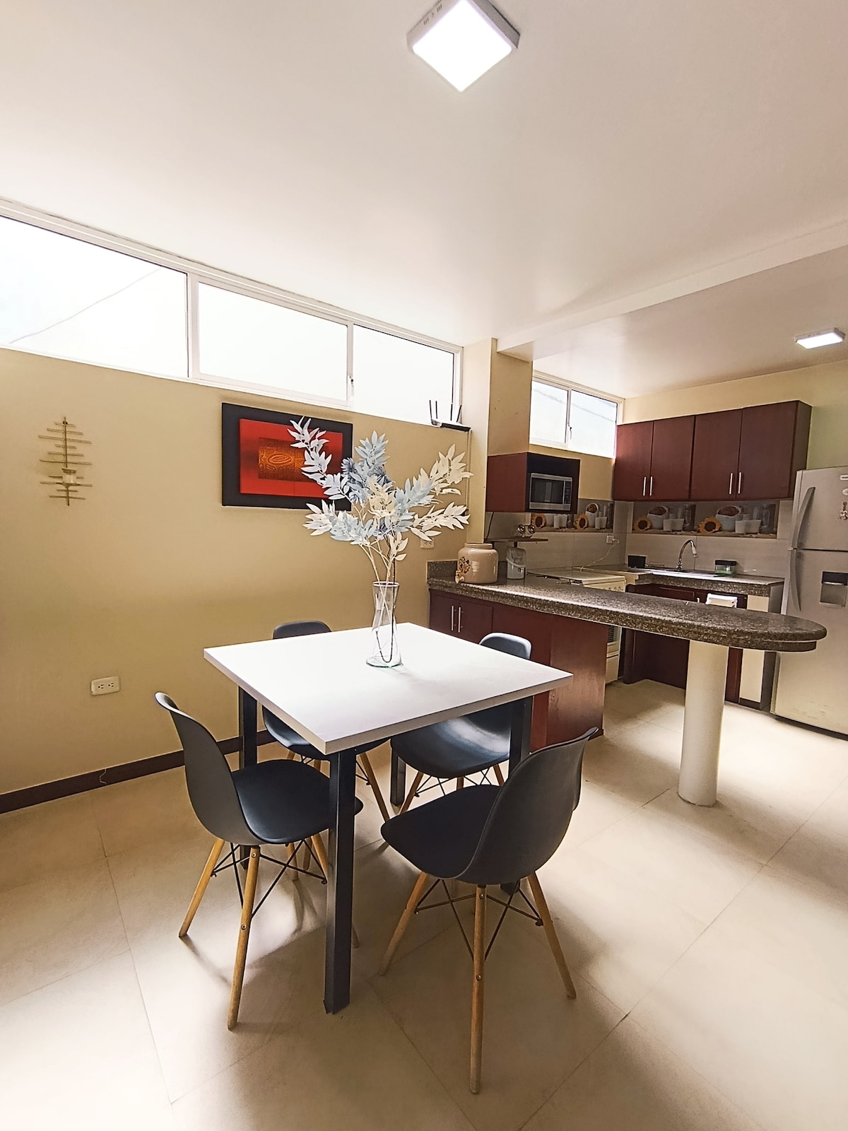 ¡Ideal para grupos! 🏔️ 2 suites modernas con ascensor a 5 min del centro. Capacidad para 6 personas con privacidad total. LO MEJOR: 🧖 ROOFTOP 360°: Sauna, parrilla y fogata con vistas a las montañas. 👮 SEGURIDAD: Parqueo exterior frente al edificio con cámaras 24/7. 🧘 WELLNESS: Área de yoga y meditación en el 1er piso. ⚡ CONECTIVIDAD: WiFi veloz de fibra óptica. 🛌 ESPACIO: Suites en 1er y 2do piso con confort total. ✨ ¡Consulta descuentos especiales!