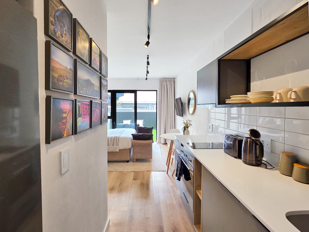 Welcome to our luxurious studio apartment, just steps away from the beautiful beaches of the Atlantic Ocean. The apartment features a queen-size bed and the kitchenette comes with a fridge, microwave, and stove, all for your convenience. For those who want to explore Cape Town's vibrant food scene, the apartment is conveniently located near trendy cafes, restaurants, and bars. Whether you're here for business or leisure, our luxury studio offers the perfect base to explore our beautiful city