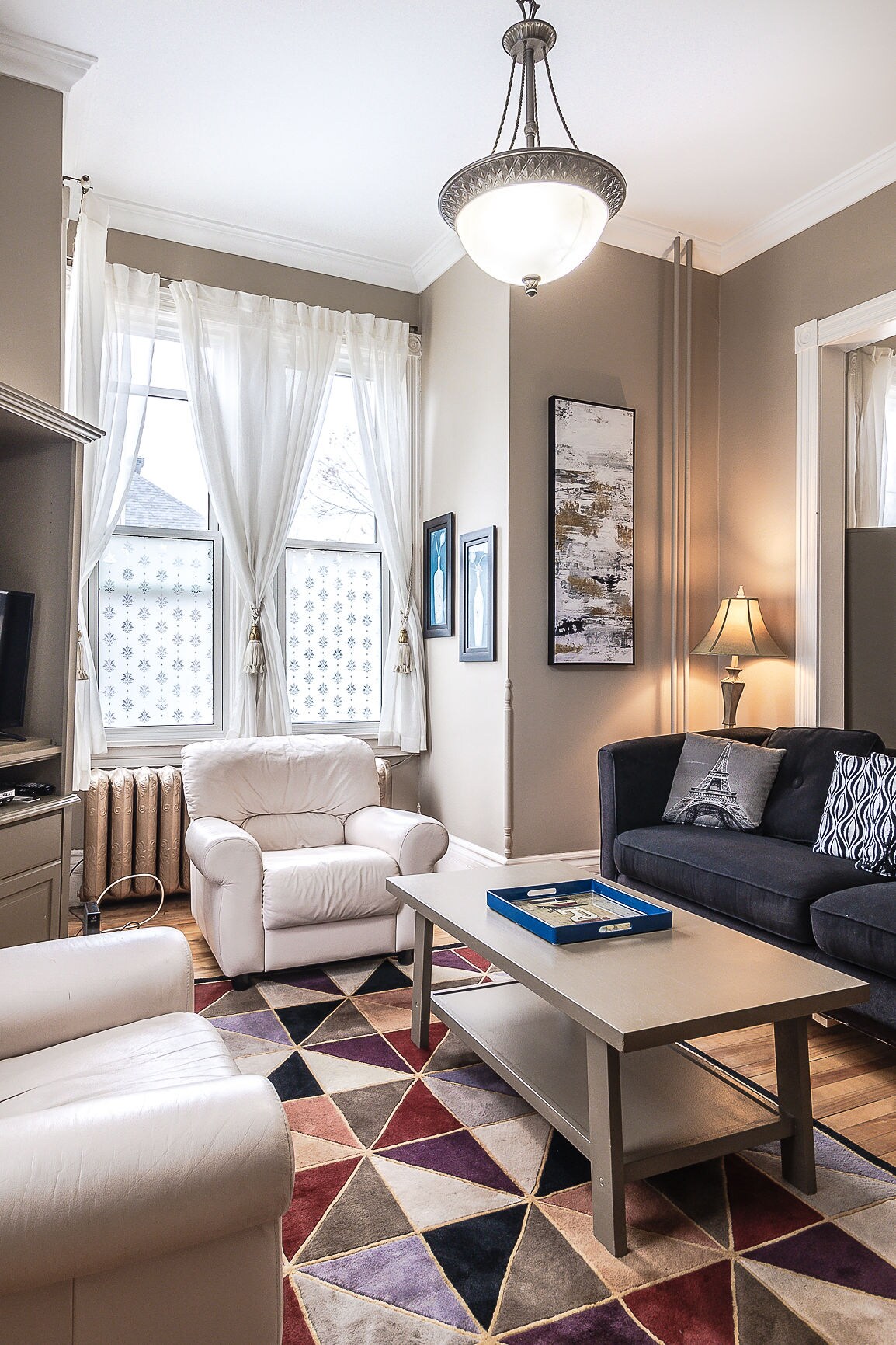 El departamento está en la planta baja de un dúplex en un barrio tranquilo y seguro. El piso de arriba también es un Airbnb y también se puede reservar para 2 dormitorios adicionales y un segundo baño y cocina. El espacio de Airbnb de la planta baja es acogedor y está bien iluminado, con pisos de madera en todas partes. Hay una gran chimenea de gas en la sala de estar y lavadora y secadora en el sótano. La cocina está totalmente equipada.