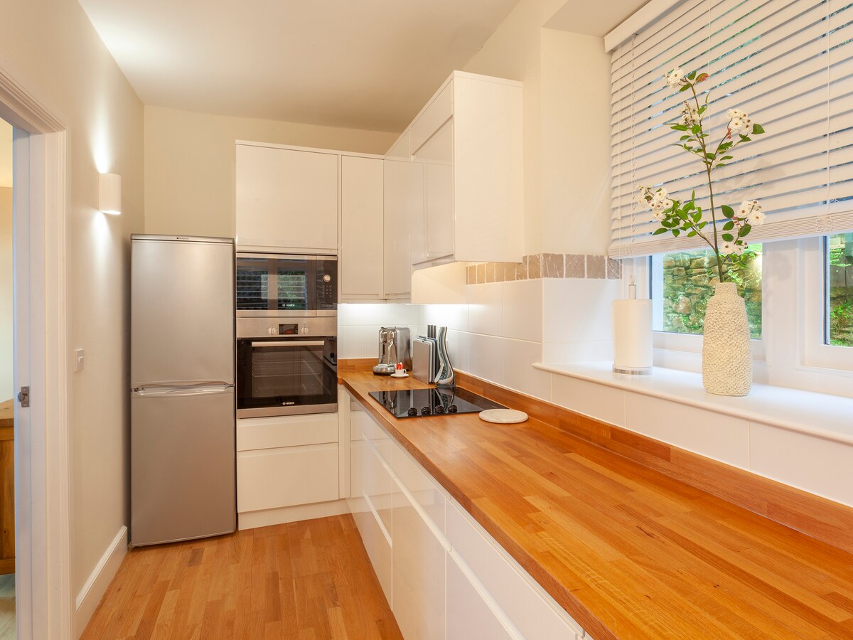 Esta es la escuela original de Barbrook construida por los metodistas en 1870: un gran espacio aireado en la planta baja con ventanas altas que dan al valle. Ahora es un refugio romántico para dos personas: un apartamento elegante pero cómodo de planta abierta con estufa de leña, cama grande y asientos junto a las ventanas, además de calefacción por suelo radiante, cocina y baño modernos y bien equipados, y TV inteligente. Es una base ideal desde la que explorar todos los placeres de Exmoor junto al mar, y tus anfitriones están justo al lado si es necesario.