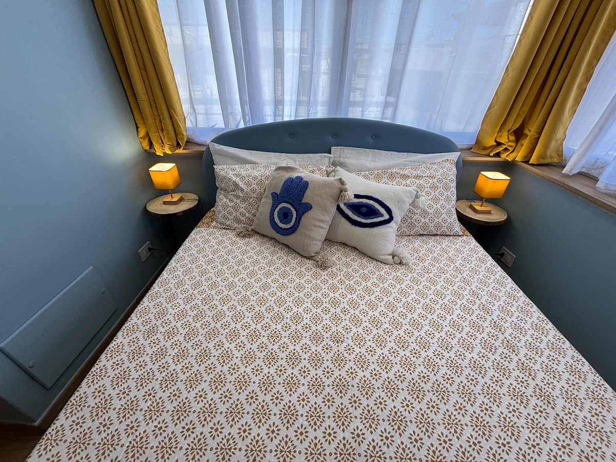 La suite de arco blanco se encuentra en el corazón de la ciudad y se caracteriza por sus elegantes bóvedas de estrellas blancas. Consta de un dormitorio, una sala de estar - cocina y una amplia terraza finamente amueblada. Equipado con una puerta blindada con cerradura inteligente, TV inteligente doble 43 y 32, calentador de agua Wifi, aire acondicionado doble, sofá cama con colchón de 18 cm, cama doble de 160x200 con colchón de látex ortopédico. posibilidades 2 asientos más en airbnb.com/h/littlewhit Busca