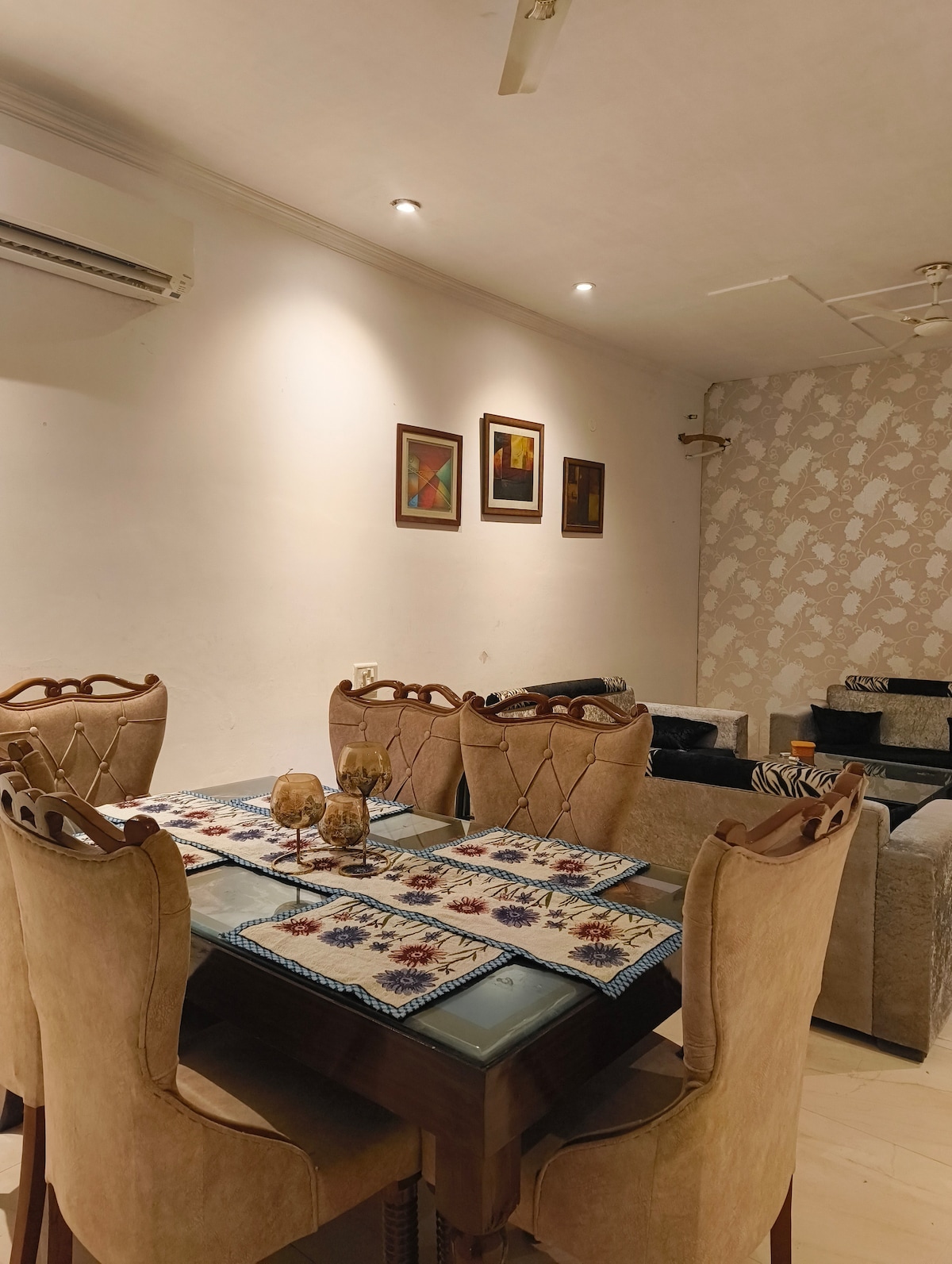 Unwind in a soulful, earthy haven in Chandigarh’s Sector 27. This ground floor home offers 2 well spaced bedrooms, a bathroom, a lounge-study, dining, kitchen & backyard. Curated by a host with 15+ years in design, branding & aesthetics, this home features hand-painted artworks by her. Centrally located, with parking & quick access to Elante, Sector 17 & fine dine restaurants at Sector 26.