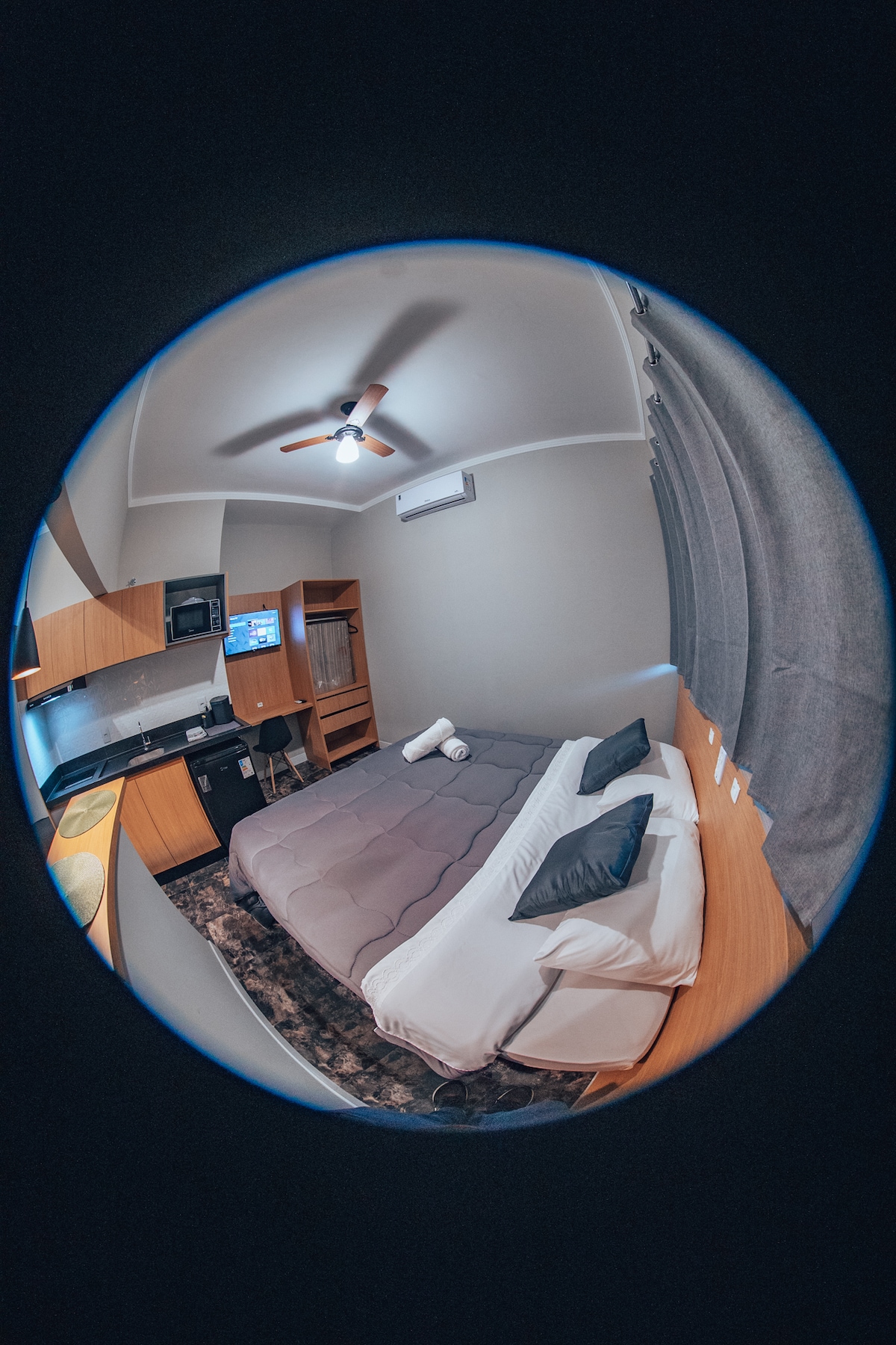 Hermoso estudio en la mejor zona de la ciudad. Nuestro estudio está diseñado con mucho encanto y elegancia, en un estilo retro, para hacer de tu estadía una experiencia inolvidable. Está muy cerca del centro comercial Jaú, bares, restaurantes y del centro de la ciudad. Si te encanta mirar el cielo y las estrellas, el estudio tiene una vista espectacular.