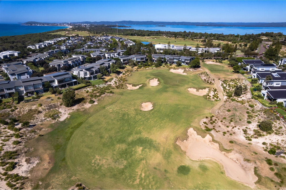 Between Beach & Lake. Perched high above the dunes provides expansive views over Nth Entrance Beach, Tuggerah Lake & Wyrrabalong National Park, all from a secluded rooftop oasis. 80m to the beach. 4min drive to the main shops. Surf Club, Patrolled beach in short walking distance. King Bedroom suite + 2 large bedrooms, 3 Lounge rooms, Kitchen, Dble car garage, with table tennis & airhokey tables. Hot Tub, Outdoor hot water shower & more. 2 min drive to award winning Magenta Shores Golf course