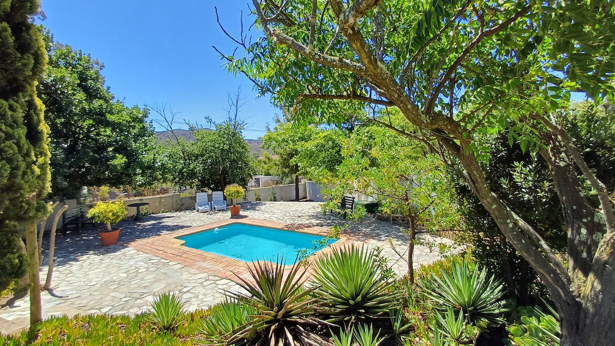 Perfect couples retreat in the beautiful village of Montagu, surrounded by breathtaking mountain scenery. Within walking distance of the town centre. Hike the nature trails right on your doorstep, or simply lap up the tranquility in our fully fitted and comfortable little cottage. Explore the amazing attractions the Langeberg area has to offer, and after a long day in the heat of the Little Karoo, relax with a glass of local wine and enjoy the African sun set from the private pool. Just Amazing!