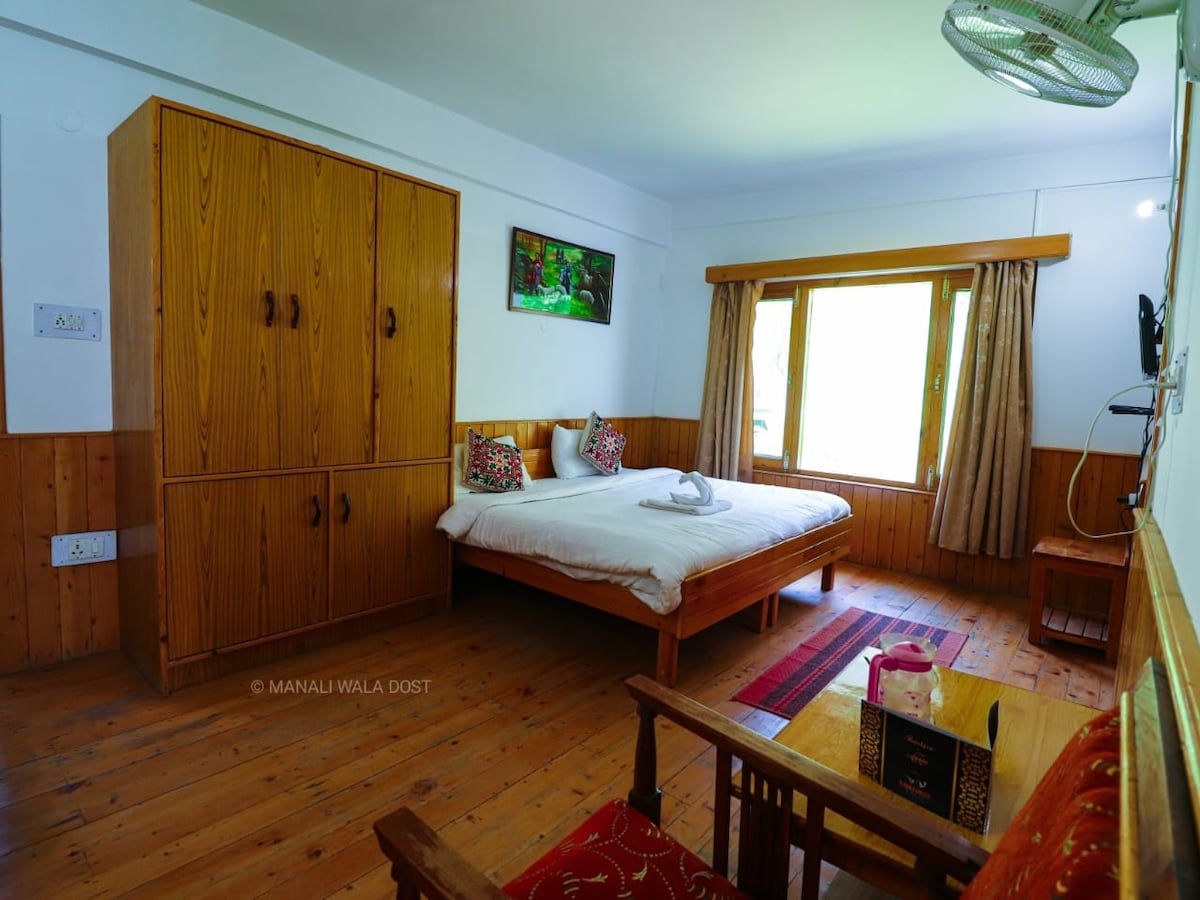 Esta habitación es una habitación en la esquina y tiene un balcón pintoresco de vistas a la montaña Rohtang. El viajero de larga estancia siempre disfrutó de esta habitación.