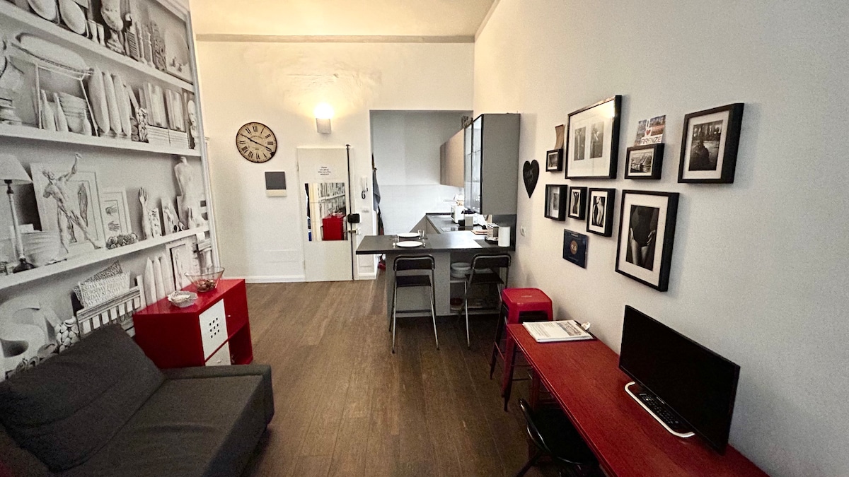 Romantic hideaway in the heart of Florence. Exposed brick walls, modern design, cozy lighting, and a loft made for cuddles or quiet reading. Fully equipped kitchen, serene bedroom, and a bright living area with unique charm. Nestled between art, history, and local life just steps from Santa Croce and Sant’Ambrogio. Perfect for couples looking for comfort, authenticity, and a little magic. A peaceful space in a truly special part of Florence.