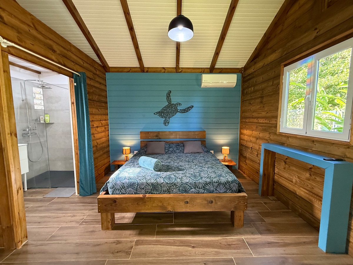 ¡Vive una experiencia única! inmersa en un jardín tropical, bingalow con impresionantes vistas al mar y a la reserva Cousteau. Accesible por un camino muy empinado de 100 m, solo podrá acceder a pie o en 4x4, pero subo sus maletas y sus compras. Energía solar y captación de ríos. Serán los únicos que disfrutarán de este magnífico lugar. ¡Ven a vivir un momento en armonía con la naturaleza y los elementos! A 10 minutos andando del mar, 20 de la playa. Cabaña con todas las comodidades