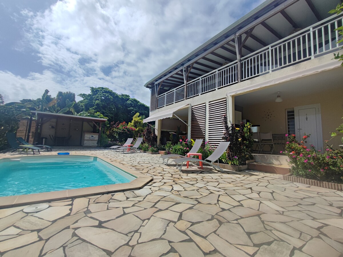 Relajate en un ambiente tropical cálido 🌴 Este estudio en la planta baja, totalmente climatizado, le ofrece una terraza privada y una cocina exterior equipada frente a la piscina. A solo 200 m del mar Caribe, disfrutará de una estancia cómoda y exótica, cerca de todas las comodidades. Un lugar ideal para un descanso relajante o un punto de partida para descubrir Guadalupe.