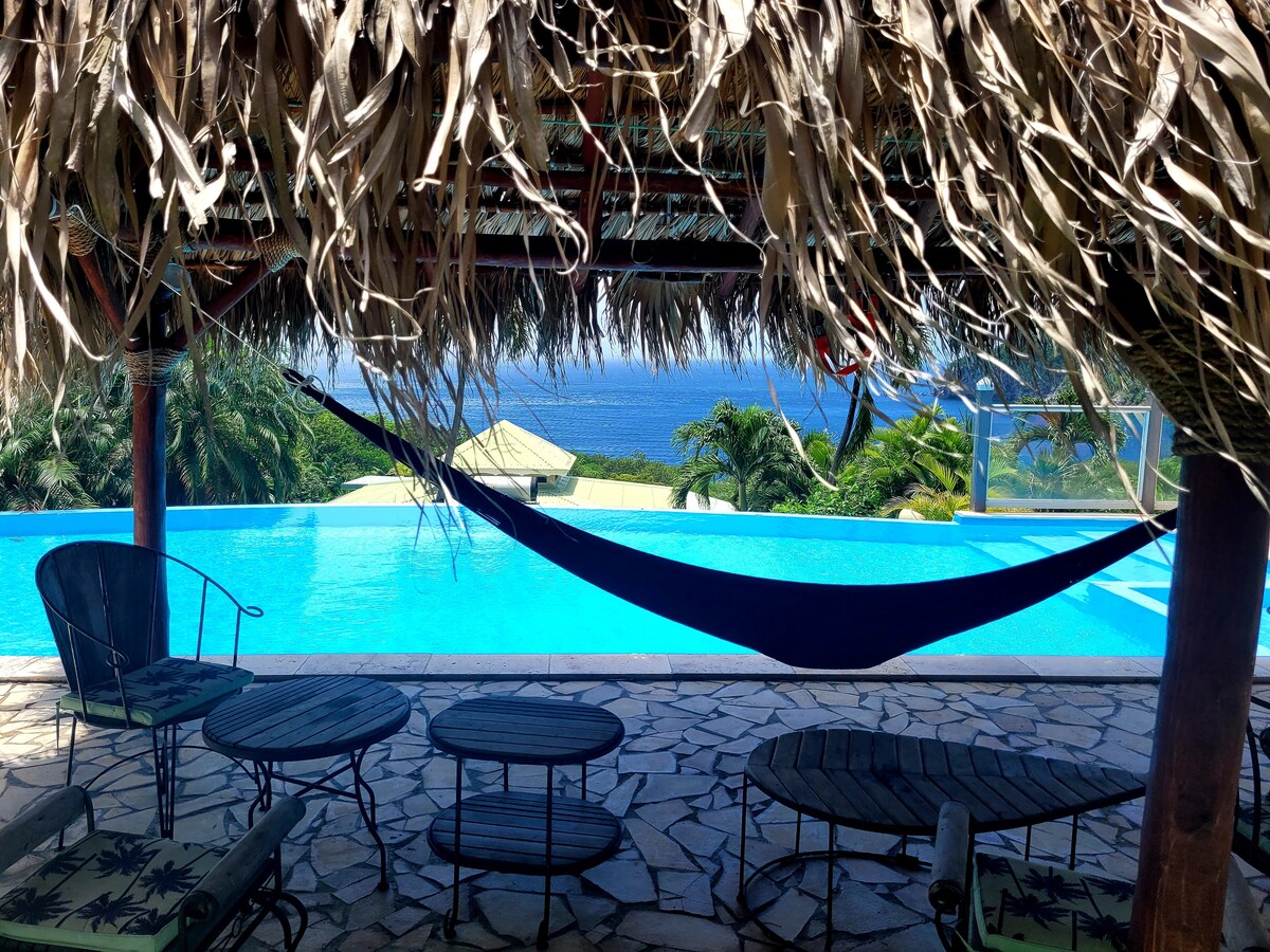 Bonito estudio de 30 m2 totalmente equipado con terraza acceso a la piscina con vistas al mar Caribe, bahía de Deshaies. En Villa situada en un complejo de alquiler muy tranquilo y bien situado (cerca de las playas más bellas de baja tierra). el estudio tiene 3 persianas eléctricas sin ventanas.