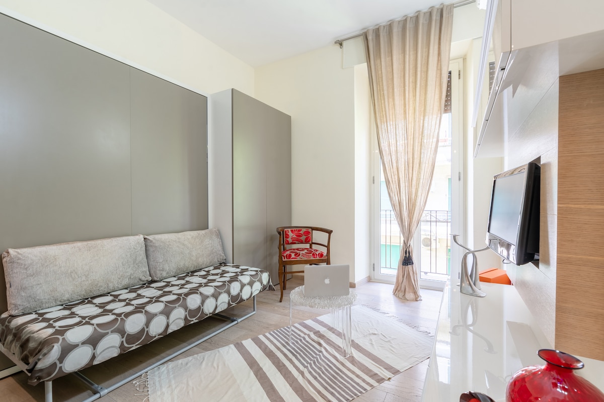 Precioso apartamento en Piazza San Giovanni, en el centro de Roma, es posible llegar en 10/15 minutos a lugares históricos y monumentos como el Coliseo, Fori Imperiali, Piazza Venezia. La casa está situada en el segundo piso de un edificio elegante y moderno, la casa se compone de sala de estar con zona de cocina, sofá cama, dormitorio, baño con ducha grande y una hermosa terraza. El entorno se caracteriza por la elegancia, la atención al detalle y el estilo funcional moderno/vintage.