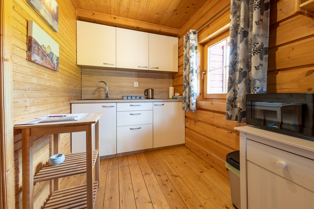 Estudio shelter house de 33 m² con balcón en una buhardilla, con hermosas vistas a los Tatras occidentales. Interior espacioso de 4 metros acabado en madera de alerce. Cama tamaño «king size» de 180 x 200 cm con opción de separación en 2 individuales. Cocina americana con lavavajillas, nevera, microondas, tostadora y cafetera. El sofá-cama plegable de 100 cm de ancho hace que el estudio sea cómodo para 2 personas o 2 personas con un niño. Bañera en un espacio abierto, aseo con lavabo en una habitación separada.