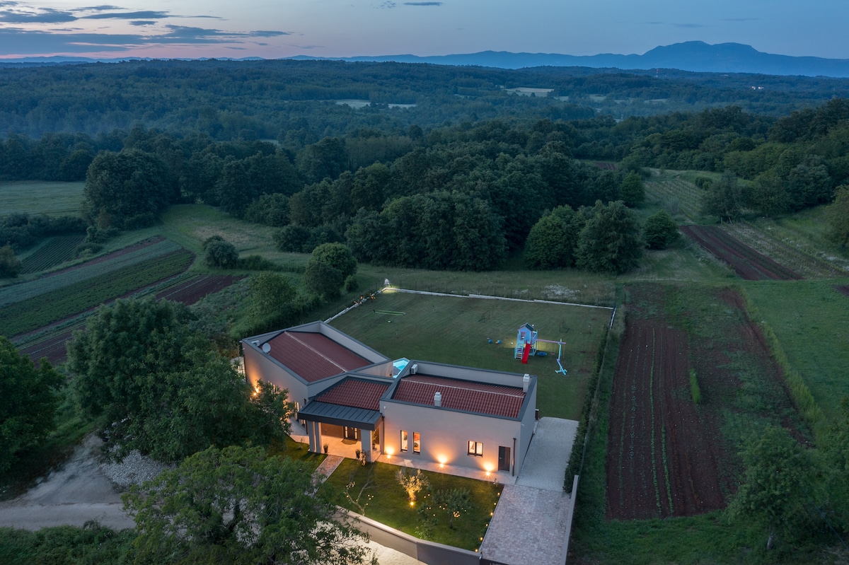 Stylish villa near Rovinj with picture worthy pool, sunk in hot tub, sauna. Wake up to lush, panoramic valley views. Couples and family-friendly, a short drive to adventure park, Brijuni National Park, dinopark, medieval towns & local cuisine. It is a true green escape for anyone looking to get back to nature with all the comfort of modern living. Fully equipped for cooking and entertainment in 2600 m2 of garden (football, speed ball, badminton & pool fun) for your kids and loved ones to enjoy.