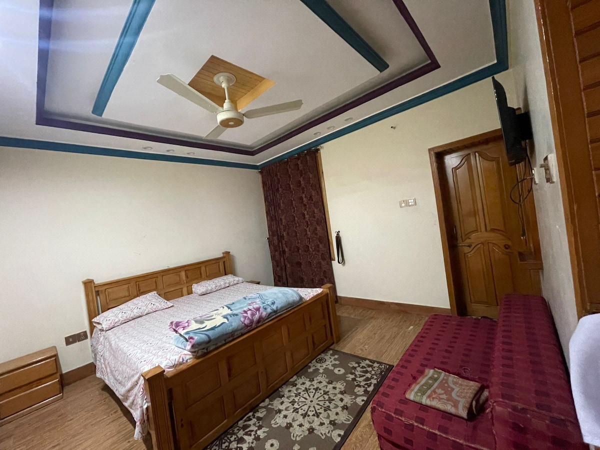 Short Summary: Enjoy a cozy and peaceful stay in the heart of Muzaffarabad, with stunning mountain views, fast WiFi, Full Description: • Spacious rooms with comfortable beds • Private balcony with breathtaking mountain & river views • Fast WiFi & Smart TV • Free secure parking Whether you’re a family, couple, or solo traveler, this apartment is a peaceful retreat with everything you need for a memorable stay. We look forward to hosting you!