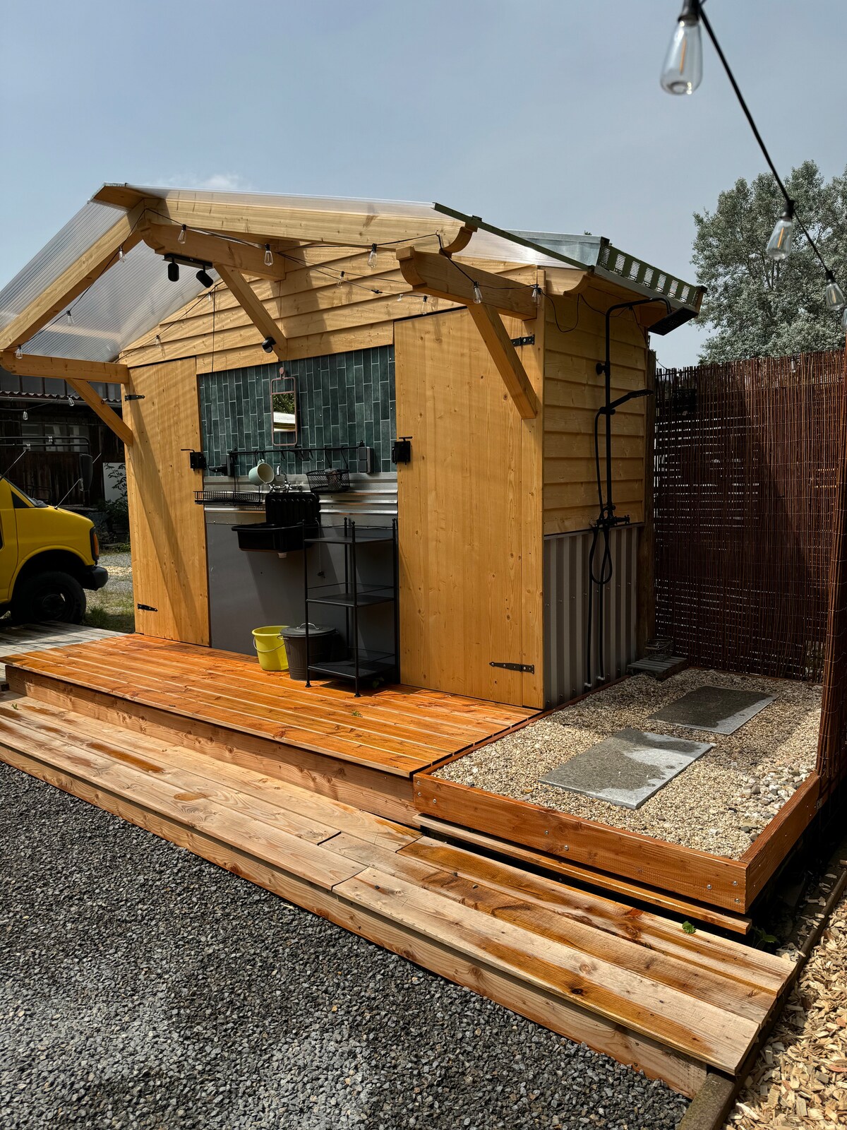 ¡Te damos la bienvenida a nuestro autobús escolar único de Nueva York! Originalmente conduciendo por las calles de Nueva York, la remodelamos completamente y la renovamos nosotros mismos con mucho amor y dedicación. El jardín ofrece todo para una estancia perfecta: una acogedora bañera americana, una barbacoa, asientos cómodos, una cabaña de lavandería al aire libre con ducha e inodoro de separación seca y una romántica fogata. Cada rincón cuenta nuestra historia.