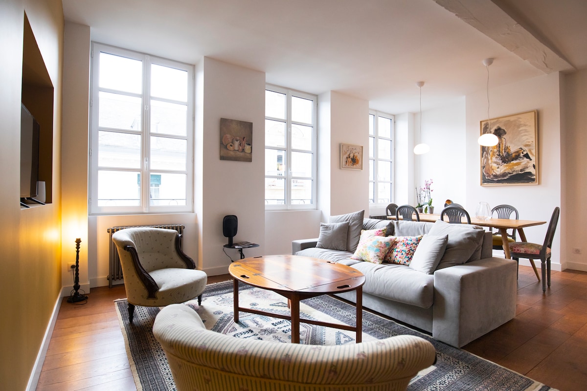 Grand T2 lumineux rénové avec soin au cœur de Bayonne. Emplacement rêvé : tout se fait à pied, des Halles aux jolies ruelles animées. Chambre Queen size, grande douche à l’italienne, cuisine équipée et bureau spacieux. Calme, charme et lumière pour un vrai cocon en plein centre. Escalier ancien, sans ascenseur au 4eme étage. Géré par ma conciergerie locale avec accueil attentionné et conseils personnalisés. ✨