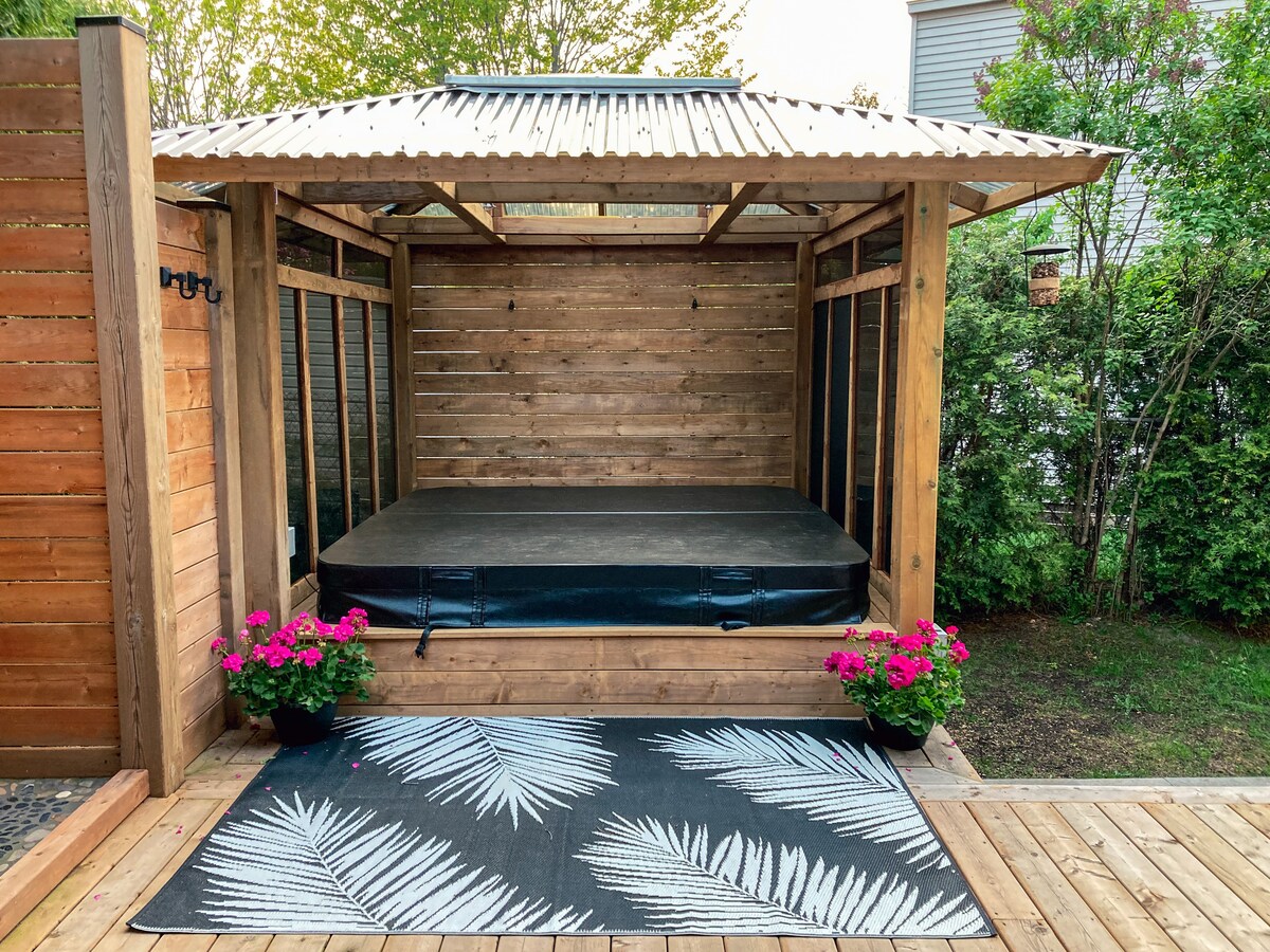 Disfruta de un cómodo refugio en esta acogedora y espaciosa unidad privada. Admira el hermoso paisaje que ofrece esta propiedad y disfruta de los tranquilos alrededores desde la bonita terraza. A pocos minutos de excelentes restaurantes y bonitas boutiques, y a un corto paseo en bicicleta del moderno pueblo de Westboro. Acceso rápido y sencillo al centro de Ottawa. A pocos pasos de Britannia Beach, donde podrás nadar en verano y hacer senderismo con raquetas de nieve en invierno. ¡Termina tu día con un largo baño en el jacuzzi!