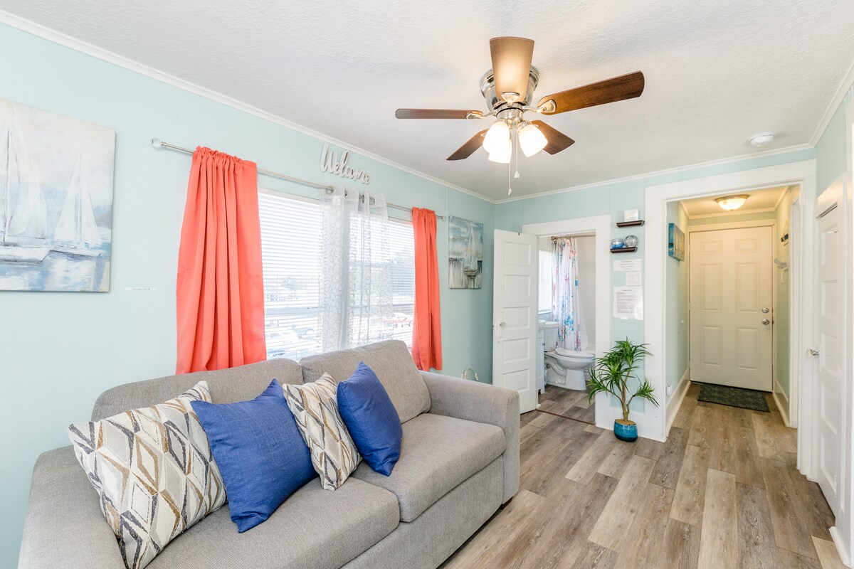 Bright, cozy, private, retro-style, garage apartment close to Houston and World Cup location, and Galveston Bay. Walking distance to many restaurants, shops, antique stores, seasonal festivals, outdoor market and events. One mile from Sylvan Beach, short drive to NASA and Kemah Boardwalk. Located between Galveston Island and Houston. World Cup NRG Stadium 23 miles. Optional transportation to Stadium available for additional fee.
