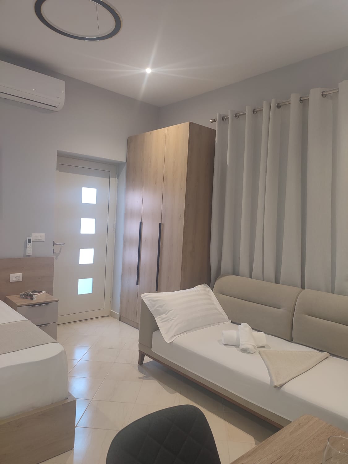 Te damos la bienvenida a esta elegante y moderna habitación ubicada en una tranquila casa de huéspedes a poca distancia en auto de la playa de Durres. Diseñado para la comodidad y la simplicidad, el espacio cuenta con una acogedora cama doble, un baño privado con ducha, un escritorio, un televisor inteligente y un cómodo sofá que agrega espacio de relajación adicional. También encontrarás un minibar compacto y toques interiores elegantes que crean un ambiente cálido y hogareño. Ideal para parejas, viajeros solitarios o estancias cortas de negocios.