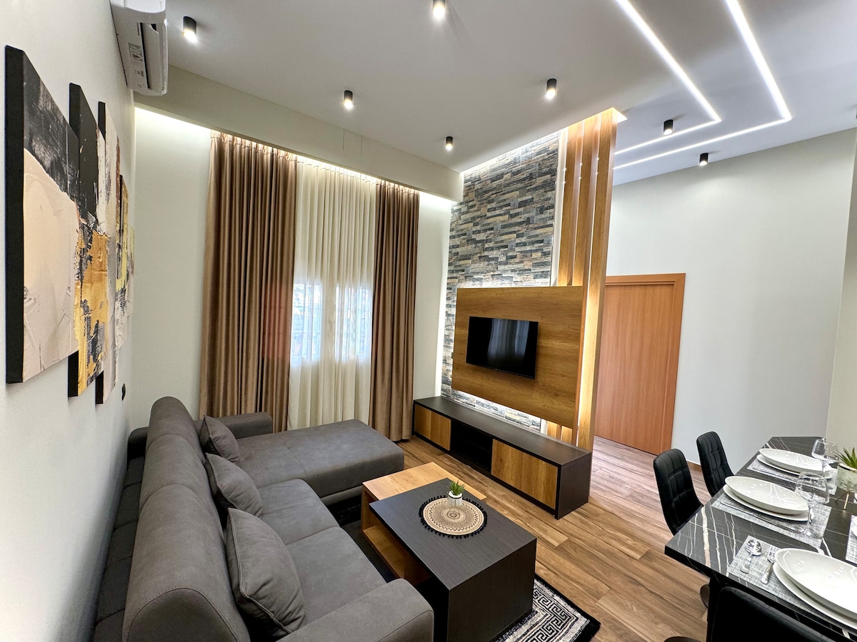 All the craftsmanship and creativity of one of Albania’s top interior design studios has been poured into this apartment. A space infused with Mediterranean simplicity, minimalist elegance, and a subtle “vacation vibe” in every corner. All of this is wrapped into 70 m² of comfort—including a generous 10 m² balcony where you can enjoy views of the aquapark and the rolling hills surrounding the village of Golem.
