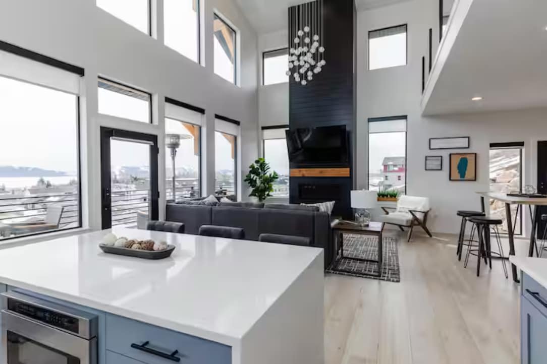 BlackRidge LakeHouse: ¡donde puedes disfrutar de increíbles vistas de Bear Lake! Ven a relajarte en este espacio tranquilo y elegante. ¡Esta casa de 3 dormitorios y 3 baños con unas vistas inmejorables al lago te dejará sin aliento! Se ha pensado en cada detalle. Tienes acceso ideal a la playa para que puedas nadar en las piscinas, relajarte en los jacuzzis o jugar en la playa. Volvé a casa y relajate en la terraza, jugá cornhole o básquet. ¡Incluso hay una litera para los niños! ¡Sal y disfruta de lo mejor de lo que ofrece Bear Lake!