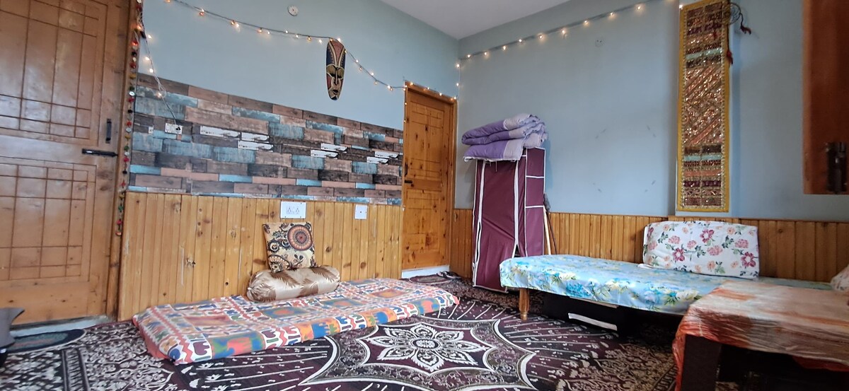 Una habitación doble de lujo recién construida en la cima de la montaña en Manali. Es un lugar privado donde solo hay 2 o 3 casas cerca de este lugar, no más que eso. Este lugar es increíblemente encantador. Desde tu habitación, puedes ver todo el valle y el Himalaya cargado de glaciares del valle de Kullu-Manali. Esta nueva habitación doble tiene cocina americana, baño higiénico, mesa de estudio, wifi y todos los servicios básicos.