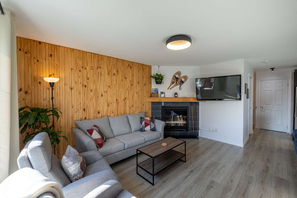 Bienvenue au VadClub! Condo au goût du jour, spacieux , chaleureux avec vue imprenable sur la montagne. Piscine intérieure. Cuisine rénovée et entièrement équipée. Bureau double pour le télétravail. stationnement intérieur et extérieur borne de recharge. Espace foyer intérieur et extérieur commun pour les 5 à 7. Activités : gym/ski/vélo/golf/randonnée/tennis/patinoire. Navette aux 20 minutes pour le MSA . casier ski/ vélo. Ascenseur. Entre le vieux Québec et Charlevoix (30 min)