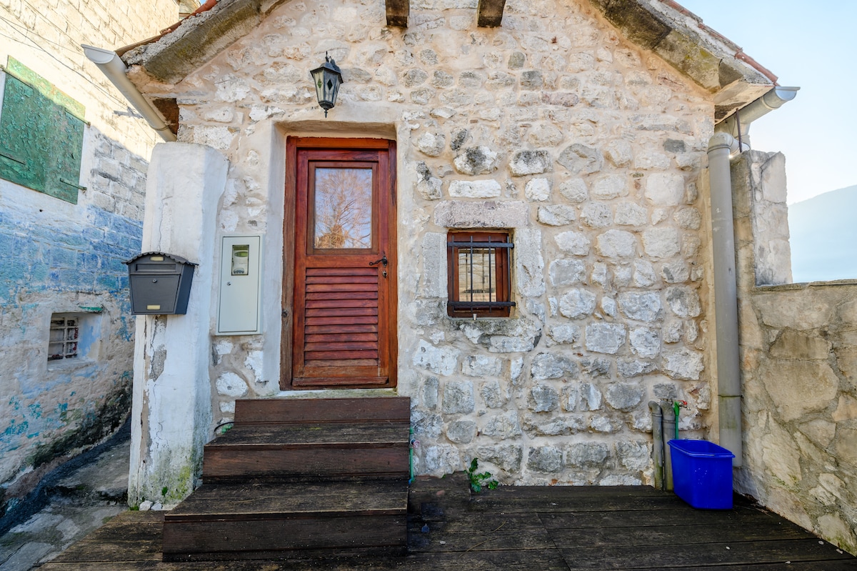 Elegant, well-appointed vintage studio with preserved antique charm in XV century stone house. This cozy and romantic place in the heart of Kotor Old Town features beautiful sea view shared terrace overlooking Old Town rooftops, Kotor Bay and the mountains. Fully-equipped kitchenette, coffee machine, AC, Wi-Fi, washing machine, and unique design will make your stay as comfy as possible. Tucked away in a picturesque walkway yet centrally located. A few minutes from bus station, beach and cafes