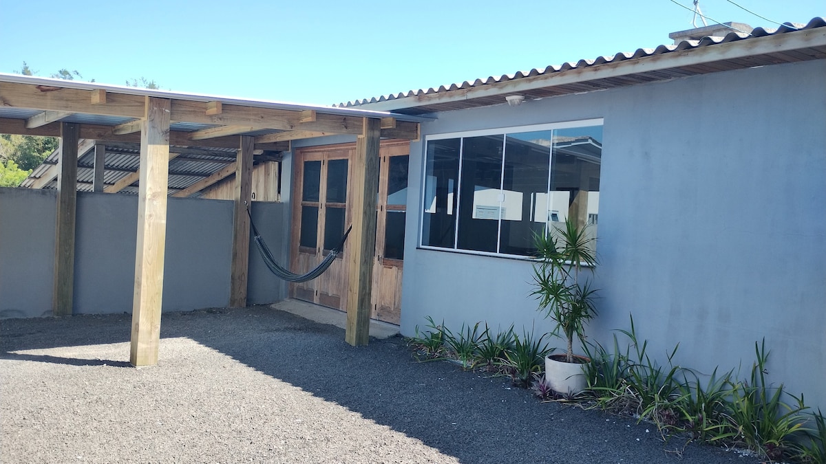 Desfrute de um refúgio aconchegante a apenas 3 quadras da Praia! A casa de hóspedes é totalmente privativa e une conforto e praticidade: quarto espaçoso, cozinha equipada, sala com TV, Amazon Fire Stick, TV Digital, Wi-Fi, ar-condicionado, ducha quente, churrasqueira e estacionamento. O pátio conta com fogueira, chuveiro externo e rede, perfeito para relaxar ao ar livre. Localização privilegiada, próxima à orla gastronômica e aos melhores restaurantes de Torres — Aloha 🌺