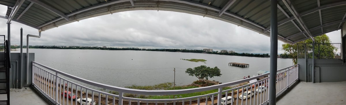 Este nuevo apartamento está situado cerca del lago Rankala con una vista panorámica al lago. Tiene dos dormitorios y una cocina con equipo básico de cocina. Ambas habitaciones tienen ventiladores y la ventilación de aire es bueno debido a la proximidad al lago, al espacio abierto y al estar ubicado en el cuarto piso. El desayuno y las comidas se pueden utilizar desde un restaurante cercano llamado Mauli. Se puede utilizar el gimnasio Rs. 100 por persona. Hemos proporcionado guías impresas de lugares alrededor de Kolhapur para ayudarte a hacer el lo mejor de tu estancia.