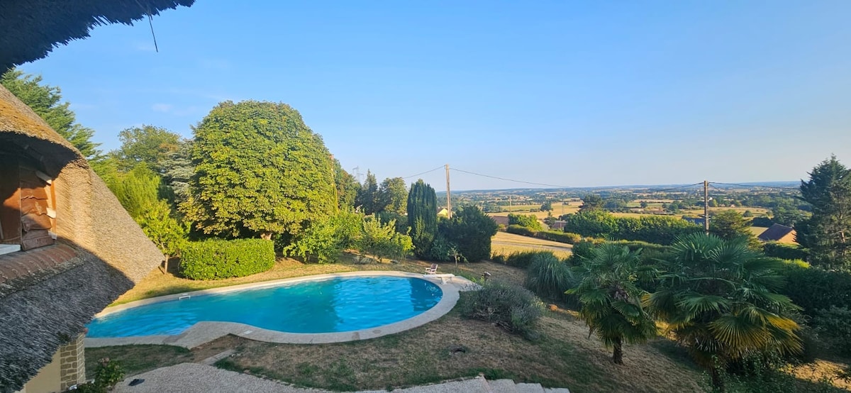 Casa de campo en el corazón de Perche, (entre Mortagne y Bellême) tranquila y con vistas al pueblo de Perrière. Esta casa atípica sin vecinos enfrente cuenta con una gran piscina de 15 m de largo, un comedor de 70 m2, una cocina de 20 m2, 4 dormitorios con cama QUEEN + 1 biblioteca que hace de 5º dormitorio, y 3 baños. Ideal para un fin de semana en familia o con amigos. A 100 m del pueblo (restaurantes, panadería, supermercado, cafetería) ¡Paseos a caballo y caminatas te esperan!