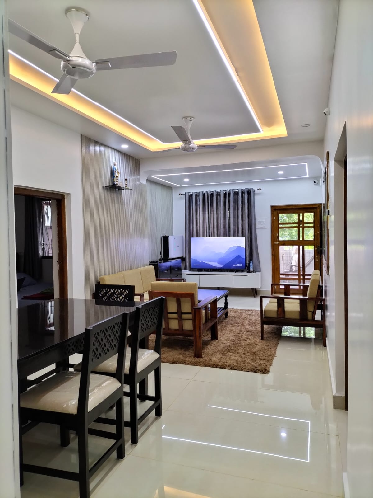 Te damos la bienvenida a nuestra acogedora y moderna casa 2BHK, perfecta para familias o grupos de amigos que buscan una estancia cómoda y relajante. Esta espaciosa casa cuenta con dos cómodas habitaciones con colchón tamaño queen, sala de estar y una cocina funcional, por lo que es ideal para unas vacaciones inolvidables. Nuestra casa está equipada con todos los servicios que necesitas para disfrutar de una estancia cómoda, como wifi, TV con Jio y OTT, respaldo de energía de 16 horas, enfriador de aire, caja de plancha, lavadora, secador de pelo, etc.