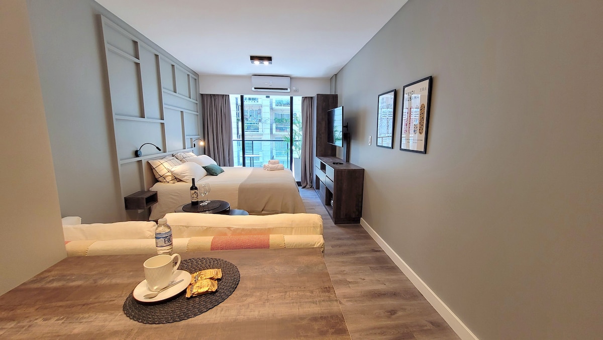 Experimenta una estadía perfecta en este lujoso apartamento en el corazón de Belgrano. Este espacio exclusivo ofrece comodidades de un hotel 5 estrellas, incluyendo cocina completa, baño moderno, cama espaciosa y seguridad 24 horas. Desde el momento en que entras, te envolverá la elegancia de un espacio nuevo y cuidadosamente diseñado con detalles de alta gama. Además, el edificio cuenta con amenidades para vivir una experiencia de primer nivel con estilo y sofisticación.