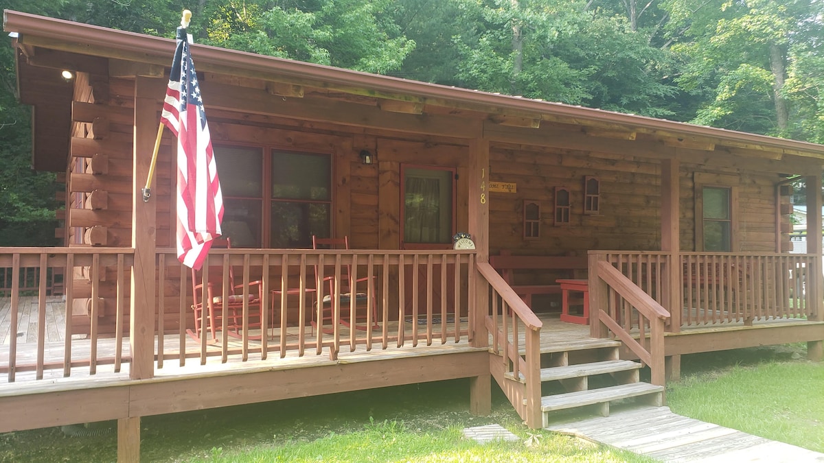 This cozy log home sits next to the creek in downtown Cumberland Gap. Walking distance to all the town shops, restaurants, and historic sites. Large, peaceful covered porch with a swing makes for a relaxing stay. Full kitchen with basic cooking necessities, dishes, coffee pot/ living room with tv/ two bedrooms (one room has a queen bed, the other has a full bed)/bathroom, and Wi-Fi access.