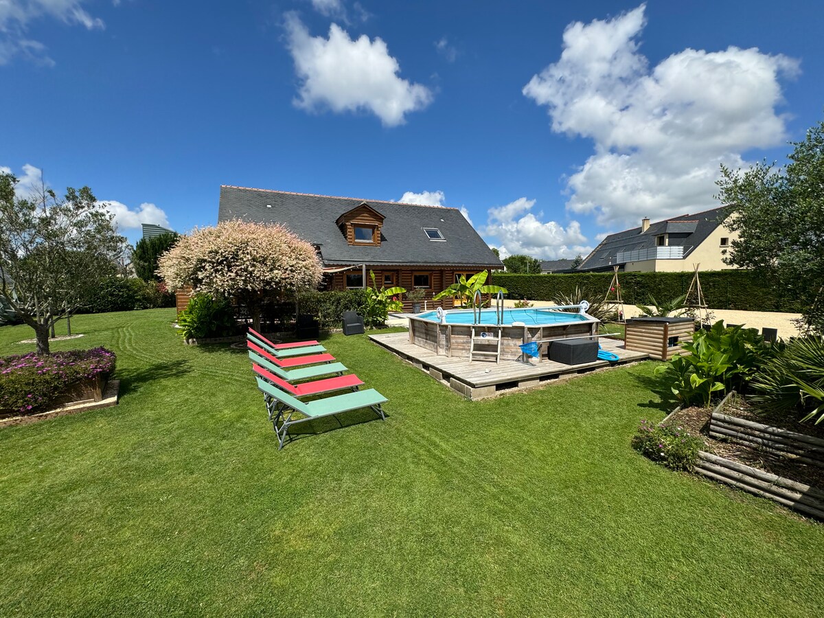 Notre chalet de montagne est unique en son genre dans notre belle région Angevine. A 20 mn d'Angers et sur la route des vins. Notre maison est spacieuse et chaleureuse, elle fait environ 200 M2. Elle n'attend que vous pour passer de bons moments en famille, entre amis avec les enfants. Prenez du bon temps été comme hiver : Vous pourrez vous installer autour de la piscine avec un bon apéritif et un barbecue l'été et l'hiver autour d'une bonne raclette dans son chaleureux salon, salle à manger.