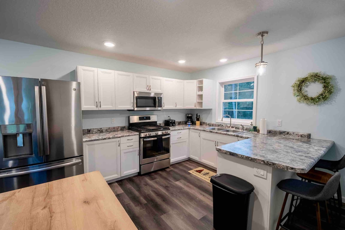 Descubre The Getaway, un encantador rincón de Northwoods, a un paso del vibrante corazón de Bemidji (a menos de 10 minutos). Imagina despertarte con pájaros cantando y relajarte con hermosas puestas de sol. El diseño de The Getaway Experience es para familias, amigos cercanos y aquellos que buscan momentos inolvidables. Nuestra acogedora morada maximiza las oportunidades para que los huéspedes sean aventureros y tranquilos. Cerca de accesos públicos, restaurantes y un toque de atracciones locales como el parque estatal Bemidji.