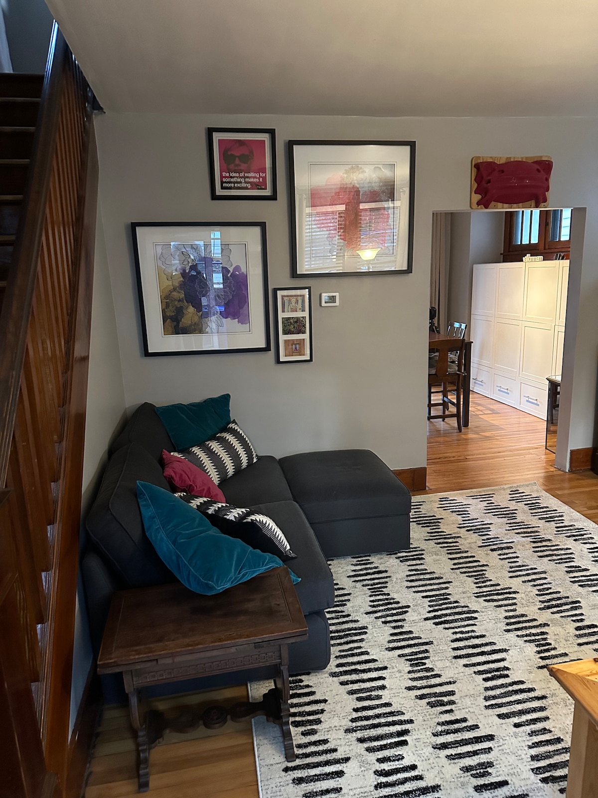 This large 1 bedroom apartment, located on the 2nd floor of an owner-occupied 1925 Arts & Crafts building, is an ode to Pittsburgh’s own Andy Warhol. There are framed Warhol prints throughout, and the wonderful Warhol Museum is less than 10 minutes away by car (or 20 if you take the corner bus). ACRISURE STADIUM can be reached via car in 15 minutes by car, as can PNC Park and downtown Pittsburgh (or 20-30 minutes by bus). The apartment is within strolling distance of many restaurants and shops.