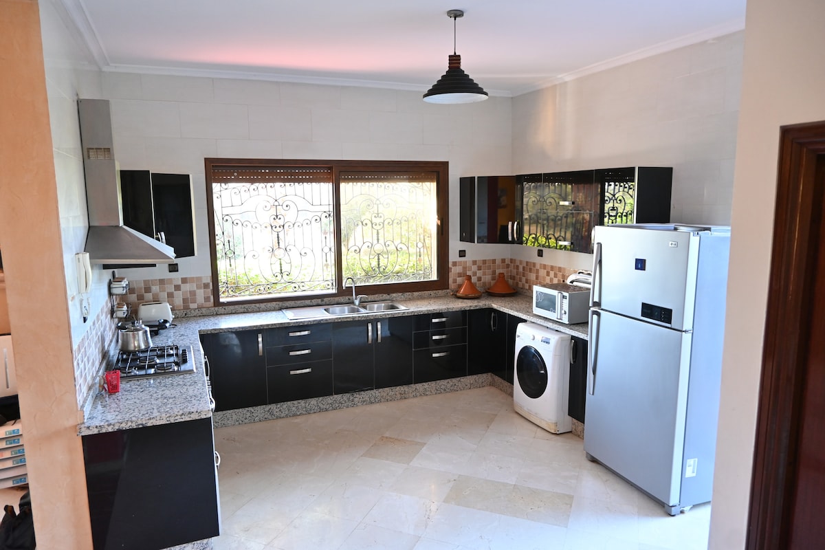 Situé entre RABAT et CASABLANCA, dans le domaine de BAHYA GOLF BEACH (à la porte de l’autoroute) doté d’un GOLF 18 trous ainsi qu’une corniche de 5km. La villa est idéal pour une occasion comme la CAN, vous êtes à 25 min du stade Moulay Abdellah et stade olympique (rabat) et 35min stade Moulay Hassan (rabat) et 50 min du stade d’honneur (Casablanca). La villa contient 3 salons et de 4 suites à l'étage, parfait pour accueillir les grandes familles pour vos vacance sous le thème match de foot.