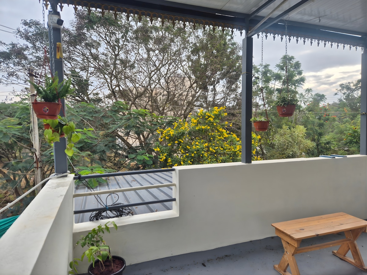 • ¡Una escapada familiar perfecta dentro de los límites de la ciudad! A solo 14 km de Hebbal. • A 18 km del aeropuerto. • Cerca de Manipal y la universidad NITTE Yelahanka. • Está ubicada en un ambiente de pueblo con un hermoso paisaje y una casa con mucha luz natural. • Es un buen lugar para una estancia tranquila, pequeñas reuniones, cumpleaños, fiestas de aniversario y sesiones de fotos previas a la boda. • Nuestra propiedad tiene un muro compuesto en los cuatro lados con un circuito cerrado de televisión, un hermoso cenador en el jardín para relajarse y fiestas.