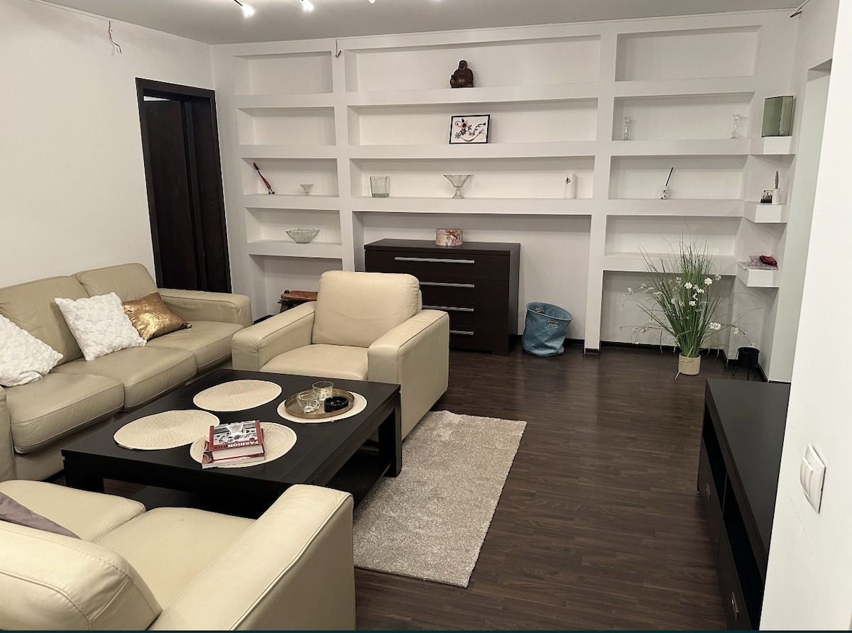 This is a new nice and cozy apartment with private parking, 3 min walking to underground station - 15 min to Bucharest Old Town. The apartment is equipped with WiFi6, dishwasher, washer, coffe maker, A.C., T.V. in every room and very confortable bed. On the same street you can find coffee shops, beauty salons, flower shops, fruit & vegetable market, supermarkets and pharmacy. You have easy acces to restaurants, wine cellar, bakery, cake shop, Pizza Hut, fastfoods.