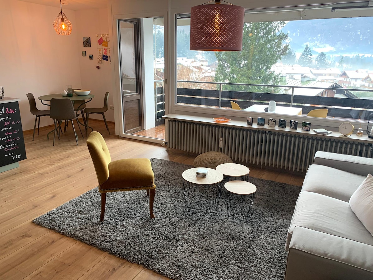 Estudio recién renovado con balcón y vistas al Watzmann
