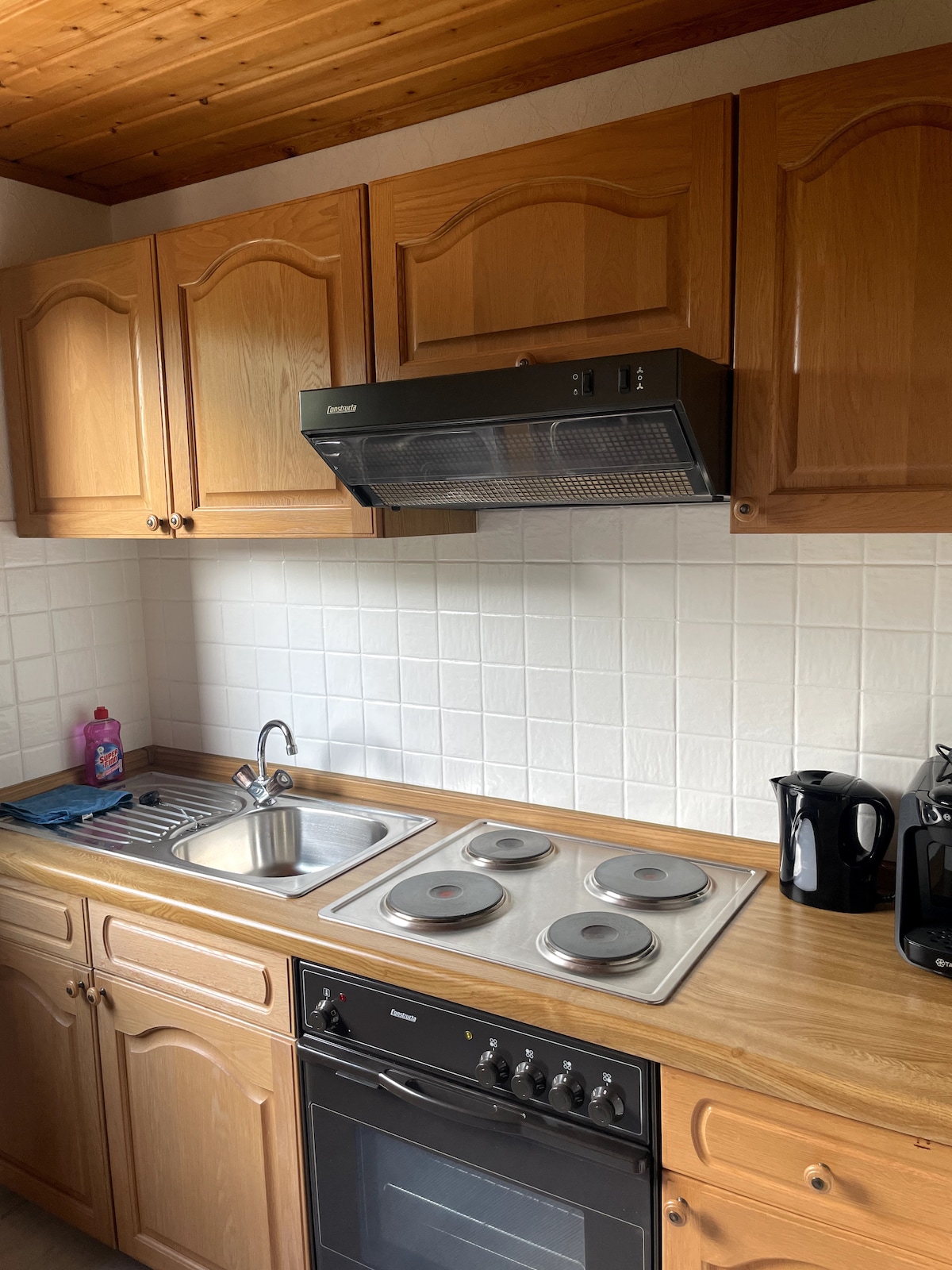 Grosszügige Wohnung im Erdgeschoss eines Zweifamilienhauses. Es gibt einen eigenen Eingang, grosse Diele, Schlafzimmer mit Doppelbett und Wohnzimmer mit TV. Die Küche ist mit Kaffeemasch., Wasserkocher, Mikrowelle, Herd, Backofen, Spülmaschine, Geschirr u. Kühlschrank ausgestattet, extra Esszimmer,Bad mit Dusche, Handtücher, separates WC. Nur für 2 Personen, nicht für Kinder geeignet. Kein Besuch erlaubt. Keine Gartennutzung.