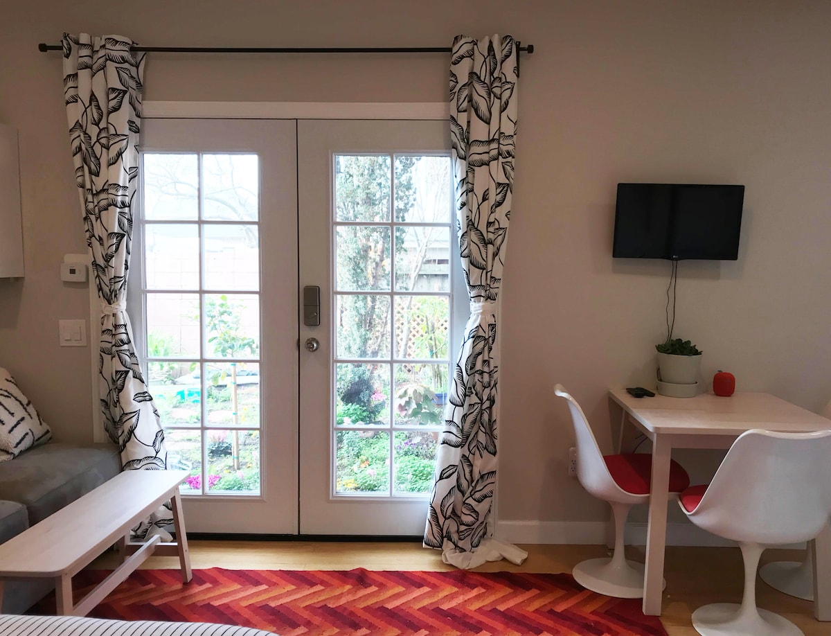 Sea nuestro huésped en nuestra cómoda casa de huéspedes estudio llena de sol en Berkeley. Nuestro estudio es pequeño pero poderoso, con todas las comodidades que necesitarás en tu viaje. Tenemos una cama tamaño queen nueva, una sala de estar con sofá de dos plazas, una mesa y sillas para trabajar, una cocina y un baño completos, mucha luz natural y una sala de estar al aire libre en una terraza. También tendrás una entrada privada y, como utilizamos cerraduras electrónicas con código, no tendrás que recoger ninguna llave. ¡Y hay un aparcamiento in situ!