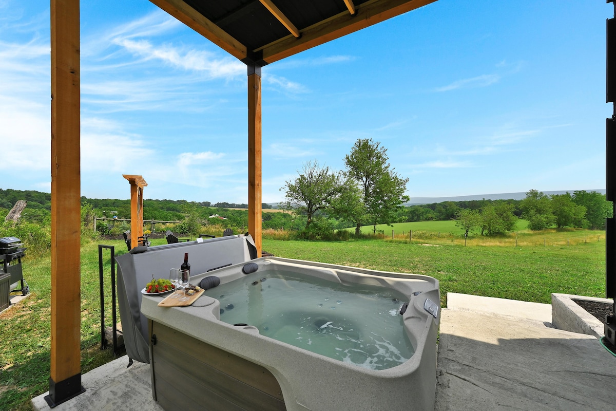 Have you ever wanted to try out a Shipping Container Tiny Home in Dutch Country? Well look no further. Perched on a hilltop overlooking the rolling Blue Mountains and Texas Longhorn cattle grazing, this sweet tiny home offers a stylish, relaxing getaway where you can slow down for a few days with your favorite human. Cozy up on the rocker with a good book, soak and relax in the hot tub or spend the day as you enjoy a morning coffee or evening cocktail taking in the scenic valley.