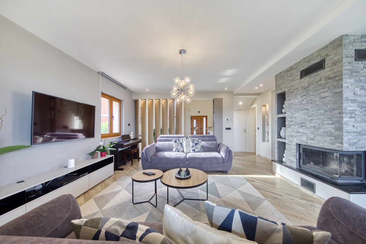 Encanto local, excelentes vistas y mucho espacio cómodo. Esta maravillosa villa de nueva construcción se encuentra cerca de Benkovac, en el interior de Zadar, llamado Ravni Kotari. Esta zona es famosa por su vino de calidad, producción de piedra y agricultura. Con una increíble piscina privada, sauna y jacuzzi, puede alojar cómodamente a un grupo de hasta 10 personas. Zadar, con su famoso casco antiguo, se encuentra a 35 minutos en coche y la playa más cercana, ubicada en Karin, está a solo 10 km.
