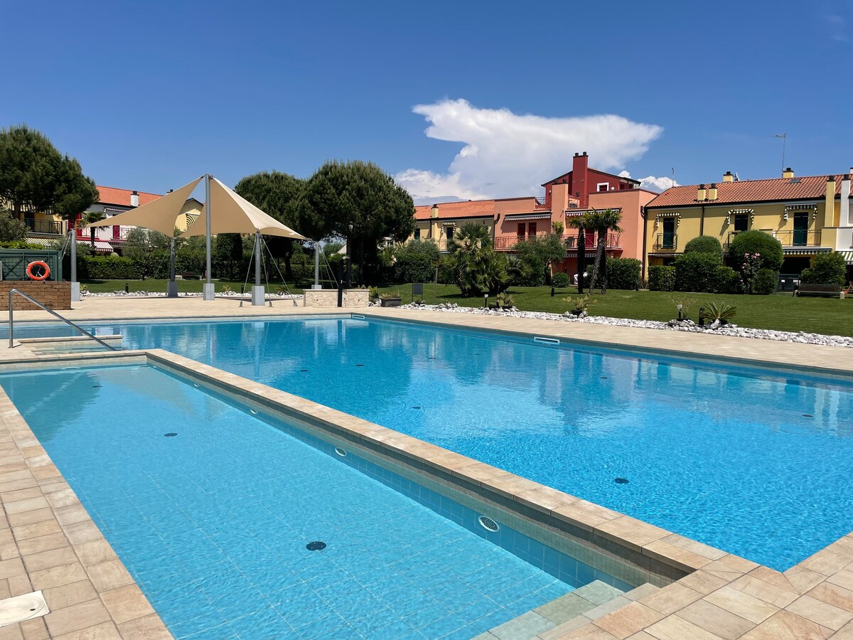 Tranquilo, espacioso, céntrico y acogedor. Espacio para toda la familia. Amplio apartamento de 90 m² en 2 plantas con terraza 2 dormitorios: 2 camas 1 baño con ducha e inodoro Comedor en la sala de estar con cocina Sala de relajación, jardín Acceso exclusivo a la piscina comunitaria (mediados de mayo a mediados de septiembre) 1 lugar de estacionamiento reservado, estacionamiento público. 3x aire acondicionado con k Ubicación perfecta, a pocos minutos en auto de Lignano y Bibione - Udine, Trieste, Venecia en 1 hora No se permiten grupos de jóvenes ni fiestas