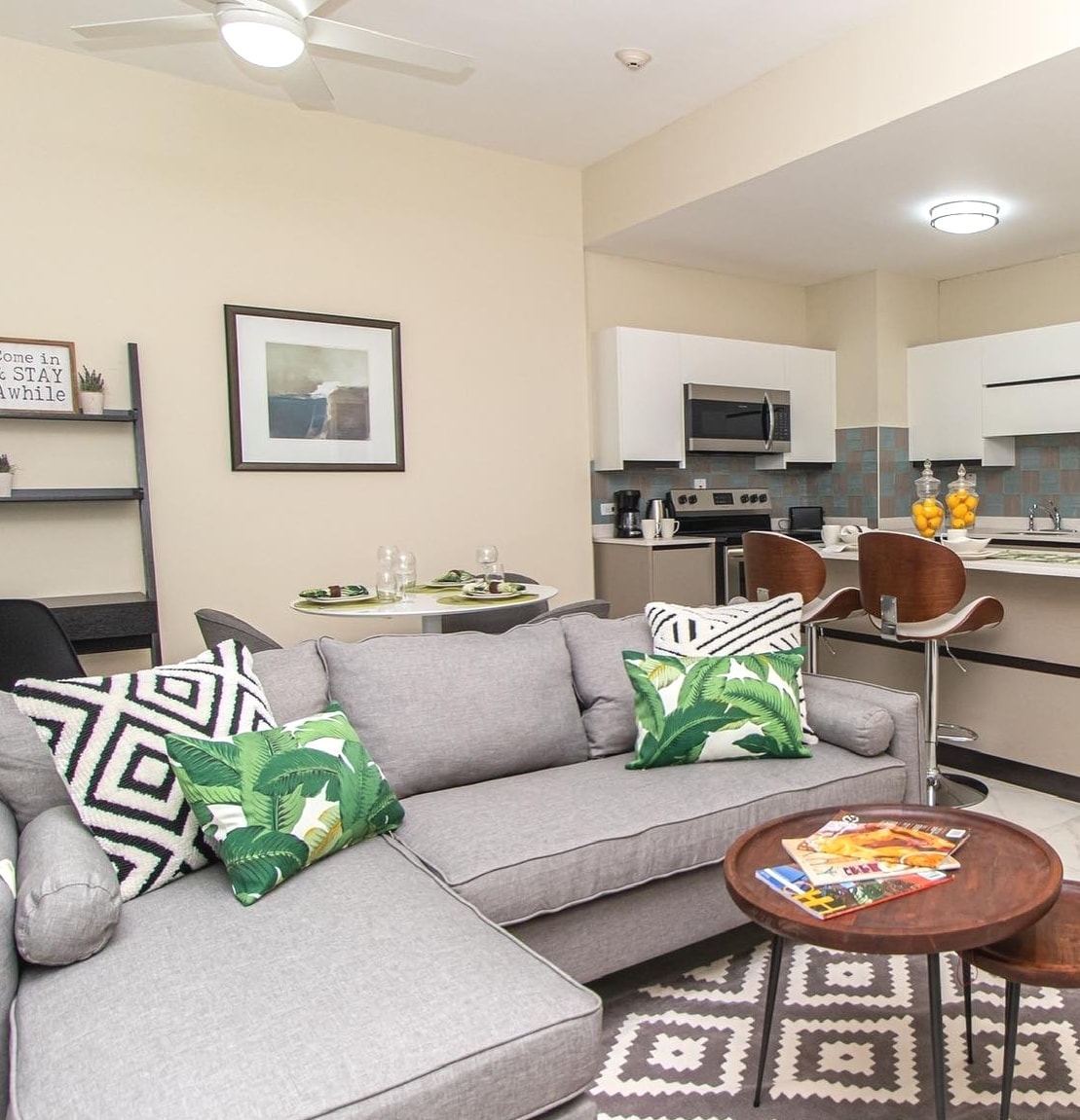 Disfruta de una experiencia relajante en este complejo de apartamentos de estilo resort céntrico, justo enfrente del Estadio Nacional, a 15 minutos del aeropuerto. Muebles y electrodomésticos modernos, cable, Netflix, Amazon Prime, wifi gratuito, aire acondicionado, calentador de agua, complejo cerrado con seguridad las 24 horas, cancha de tenis, pista para correr, casa club, gimnasio, estacionamiento gratuito y césped bien cuidado. Cerca de las principales zonas comerciales, restaurantes elegantes, tiendas de comestibles, el Museo Bob Marley, Devon House y Emancipation Park.