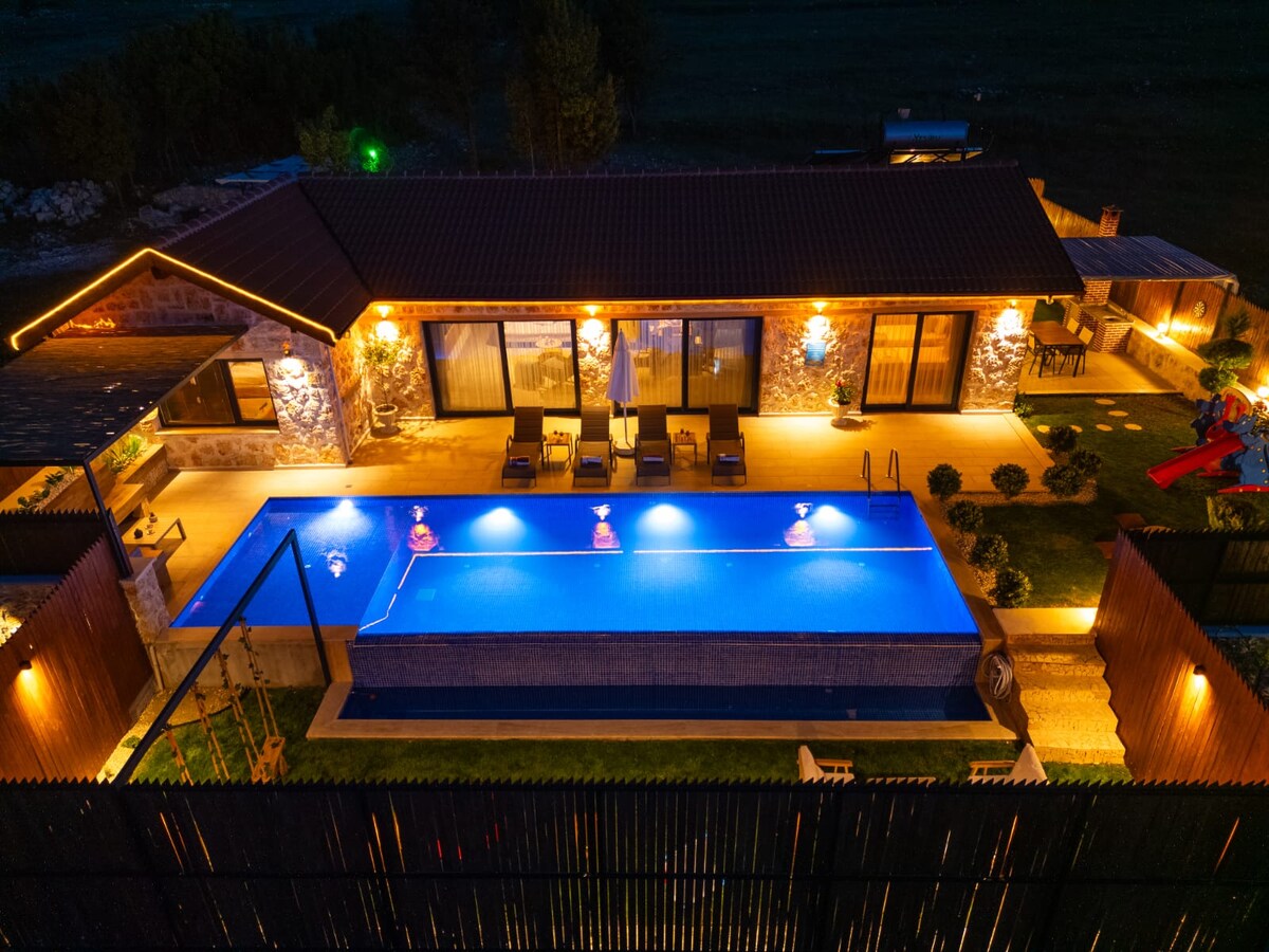 Elizabella Villa is an ultra-private luxury Mediterranean sanctuary immersed in mountains and olive groves. Gallery-height living frames uninterrupted horizons and natural light. Heated indoor spa pool, sauna and expansive outdoor pool offer year-round indulgence. Four private suites with freestanding soaking tubs and terraces create immersive calm. Warm tones and symmetry shape a residence of scale and presence. Minutes from Saklıkent Canyon and its pale turquoise river, yet entirely secluded.