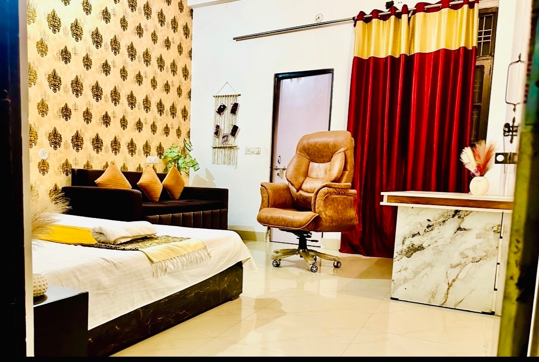 Enjoy a peaceful stay in our bright 2nd-floor flat, perfect for unwinding in Lucknow. The space includes a comfy bedroom, a spacious living area, two clean washrooms, a workstation, large sofa-couch sets, TV, WiFi, and a well-equipped kitchen for easy cooking. Surrounded by greenery, it’s a calm retreat with quick delivery access and a grocery shop just 2 minutes away. Ideal for relaxing, working, or exploring the city at your own pace. Note this on 2nd floor with stair access (no lifts).