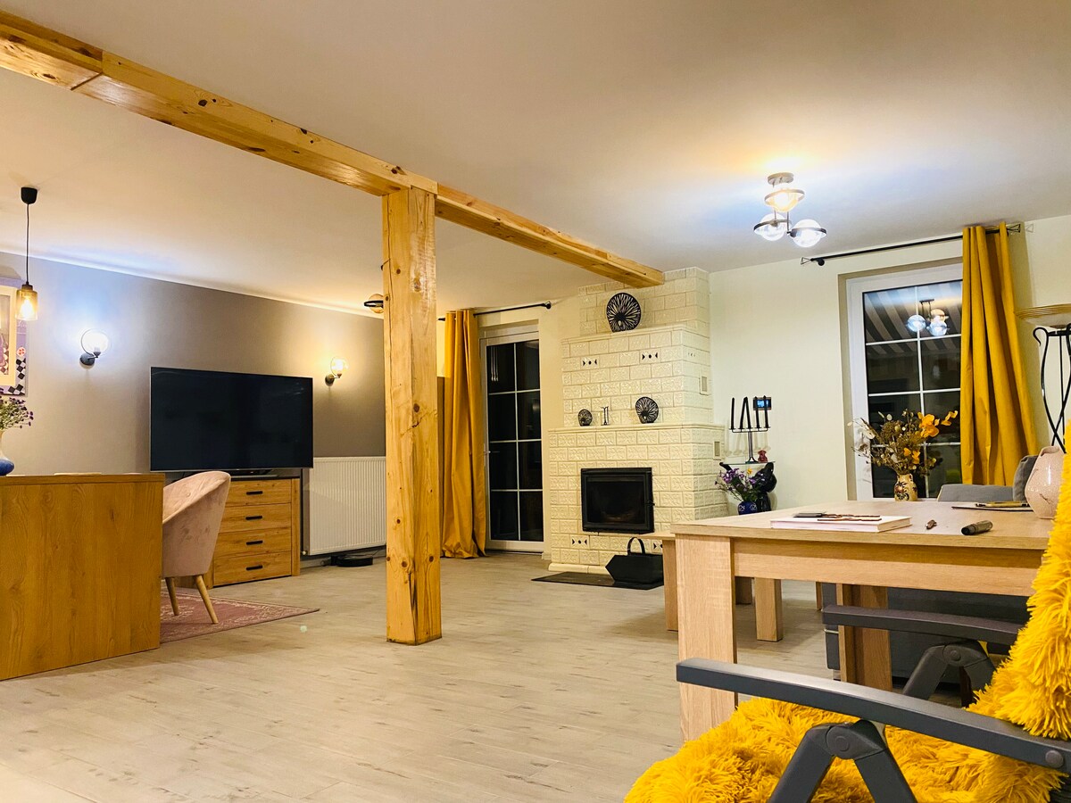 Zapraszamy do jednego z dwóch piętrowych mieszkań w drewnianym, luksusowym domu, zbudowanym w podlaskim stylu. "Uroczysko Hruszki" znajduje się w malowniczej wiosce Gruszki, na skraju Puszczy Białowieskiej, przy szlaku rowerowym Green Velo. Cisza, piękne wnętrza, dzika przyroda za oknem, trasy wycieczkowe zaczynające się tuż za drzwiami – dajcie się zauroczyć! Dla większej grupy możliwe wynajęcie obu mieszkań, połączonych wewnętrznymi drzwiami – 15 łóżek